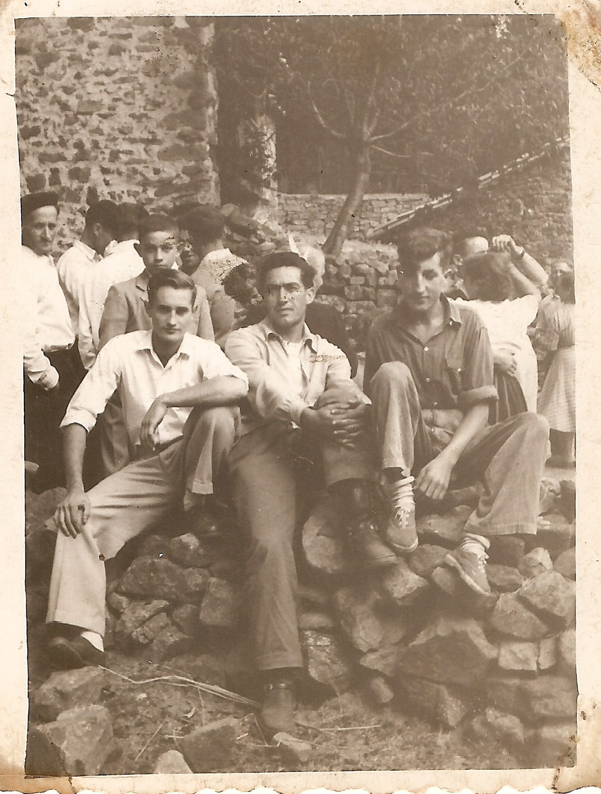 Abajo a la izqda. está Tino (hijo de Fernanda) y a la dcha. Antonio "Tizones". Las 3 chicas del centro no sé quienes son.