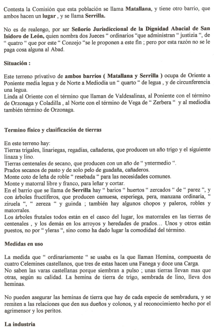 Anteriormente, tanto Matallana como Serrilla pertenecían al Ayuntamiento de Vegacervera "Vega de Zerbera", hasta que a finales del s. XIX Matallana constituyó su propio Ayuntamiento y Serrilla se dotó de Junta Vecinal propia.