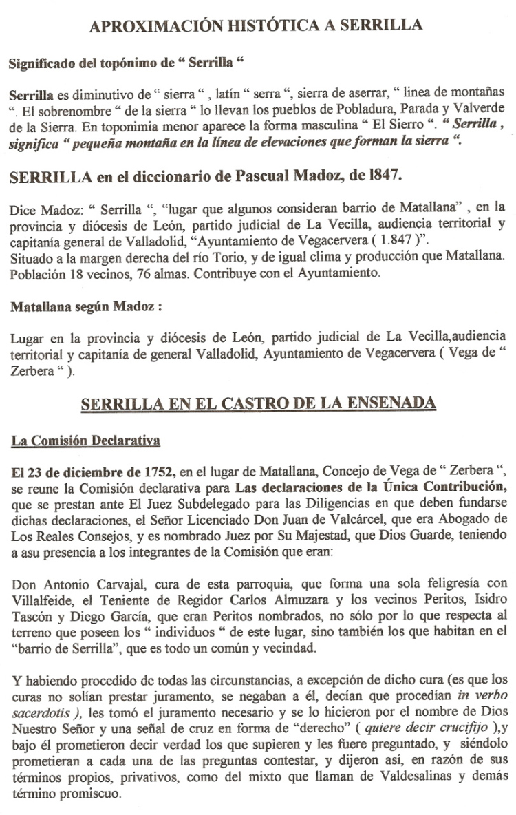 Serrilla siempre ha estado vinculado a Matallana de Torío y ambos a la existencia de un monasterio en los alrededores de la Iglesia de San Félix que hoy pertenece a Villalfeide.